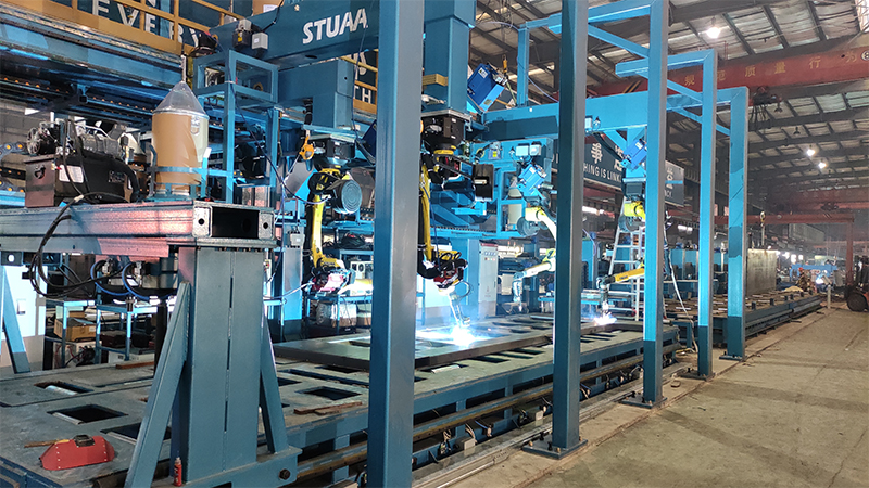 适应多品种小批量生产,适应U型厢板、矩形厢板和底板等工件,整线自动物流自动焊接,对接MES/ERP
