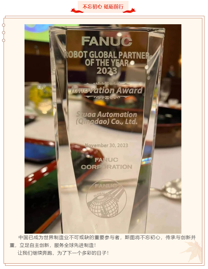 热烈庆祝2023年斯图再获FANUC全球创新奖!